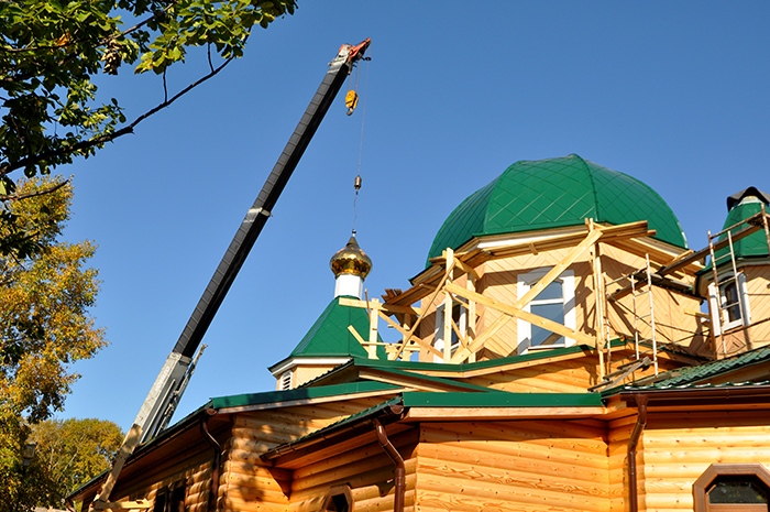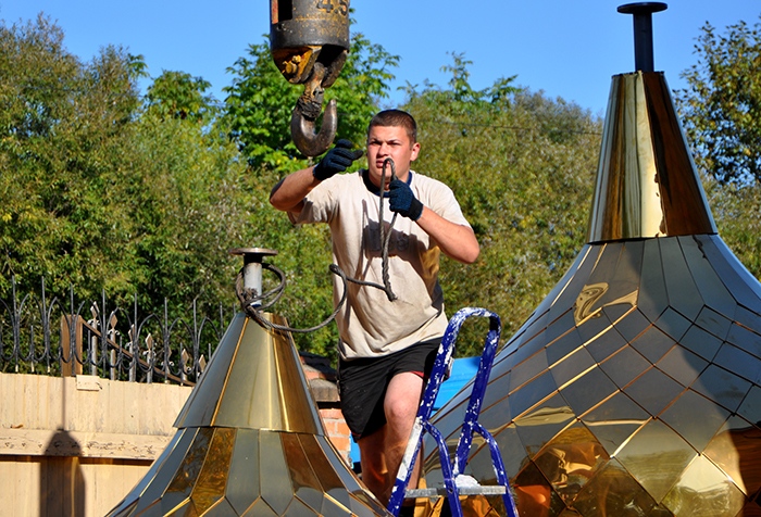 На обновленный храм св.благ.вел.кн. Александра Невского установлены купола. 9 сентября 2013 года.